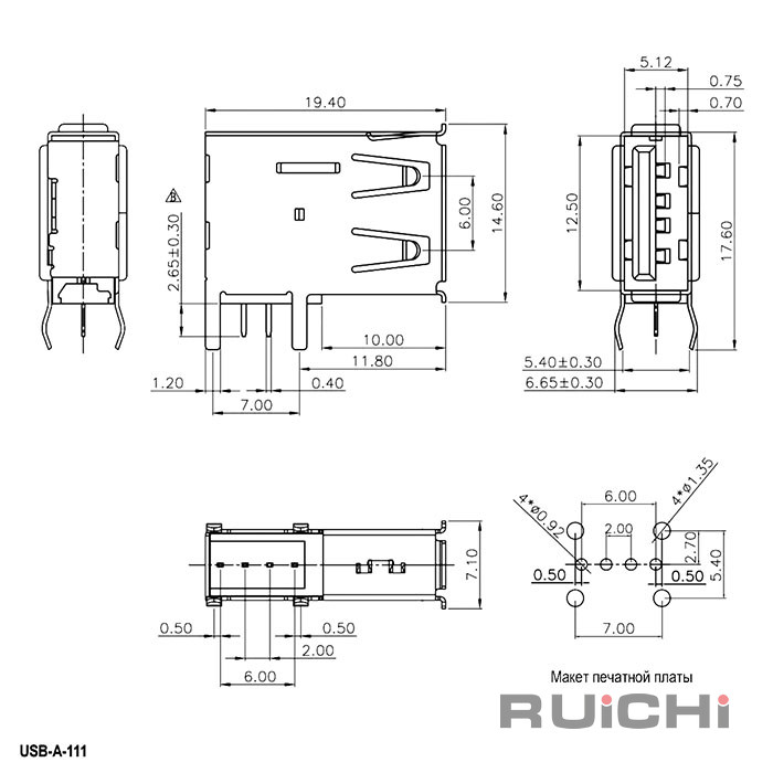 | Тип разъёма | гнездо USB (вертикальная установка) |