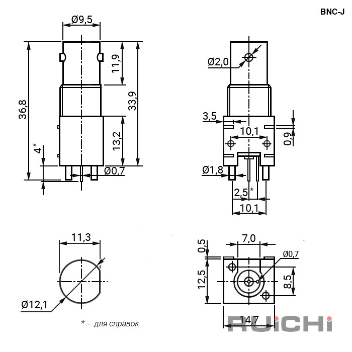 | Описание | ВЧ разъем BNC, пластиковый корпус |