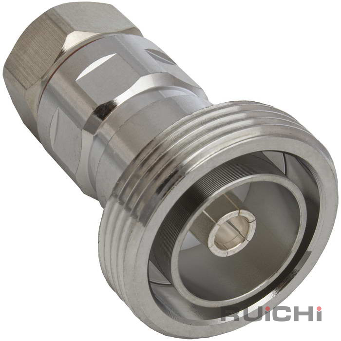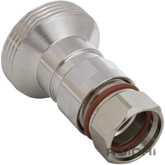 Высокочастотный разъем 7/16 DIN (розетка) RUICHI 25-J012U, 7.5 ГГц, 50 Ом, IP68, -40...+85 °C, монтаж на кабель, тип кабеля SCF-12-50, РК 50-9-35, корпус/контакт латунь – это коаксиальный коннектор большого размера с резьбовым соединением. Обозначение 7/16 происходит от метрических размеров рабочей поверхности контактов соединителя: 7 мм наружного диаметра внутреннего контакта и 16 мм внутреннего диаметра внешнего контакта.