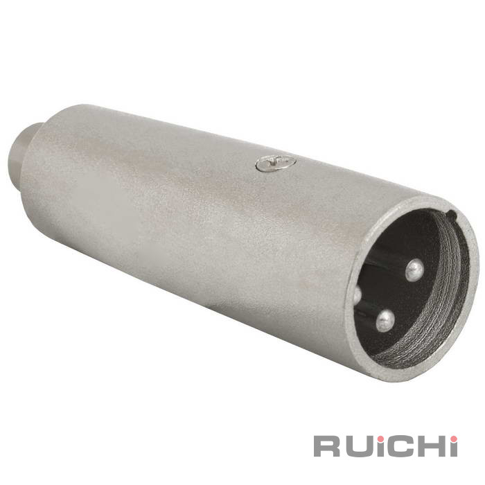 Переходник микрофонный RUICHI JD-490 XLR 3pin штекер (папа)-RCA гнездо (мама), 48 В, -20...+50°C, цвет серый металлик - это тип электрического разъема, в основном используемый в профессиональном аудио-, видео- и сценическом осветительном оборудовании. Соединители и переходники с разъемом XLR имеют цилиндрическую конструкцию с тремя контактами разъемов. Буква «X» в аббревиатуре XLR определяет серию, «L» означает «Latched» («с защёлкой»), «R» — Resilient polychloroprene («эластичная резина синтетического происхождения») — материал, из которого изготовлена защищающая соединение кольцевидная прокладка на коннекторе. Разъемы XLR включены в международный стандарт размеров IEC 61076-2-103. Разъем XLR внешне похож на разъем DIN меньшего размера, с которым он физически несовместим.