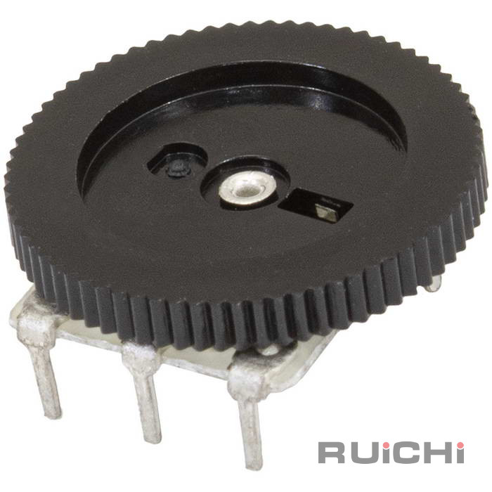 Дуплексный зубчатый потенциометр (переключатель громкости) RUICHI B103, 10 кОм, 1 А, 50 В/12 В, 3 контакта, корпус: толщина 2 мм, диаметр 16 мм используются при многократных регулировках аппаратуры, обладают большой износоустойчивостью.