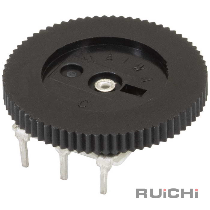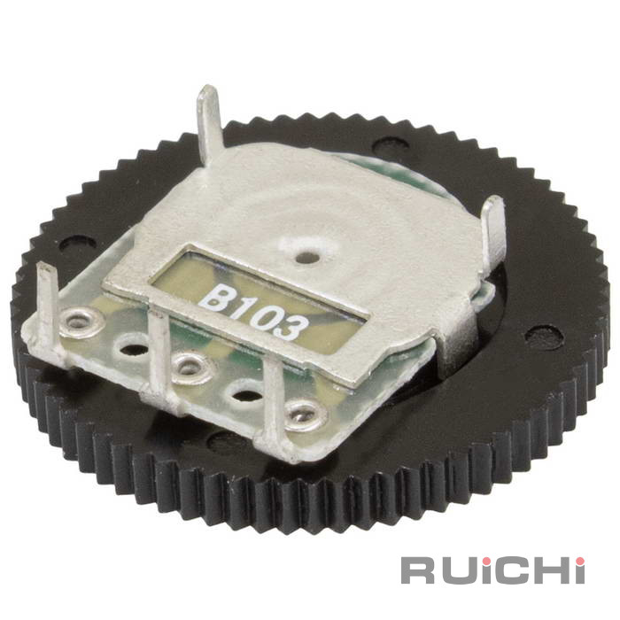 Дуплексный зубчатый потенциометр (переключатель громкости) RUICHI B103, 10 кОм, 1 А, 50 В/12 В, 3 контакта, корпус: толщина 2 мм, диаметр 18 мм используются при многократных регулировках аппаратуры, обладают большой износоустойчивостью.