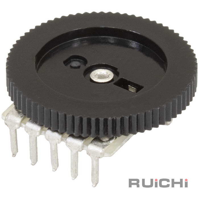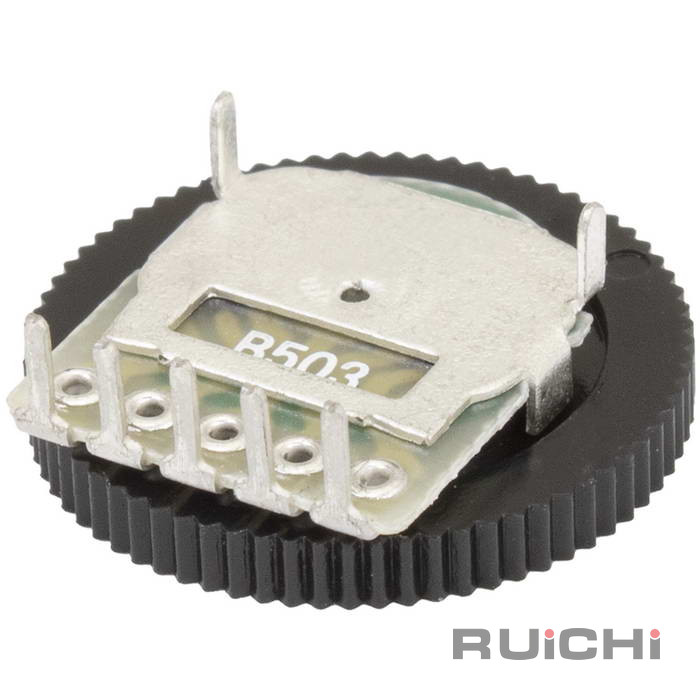 Дуплексный зубчатый потенциометр (переключатель громкости) RUICHI B503, 50 кОм, 1 А, 50 В/12 В, 5 контактов, корпус: толщина 2 мм, диаметр 16 мм используются при многократных регулировках аппаратуры, обладают большой износоустойчивостью.
