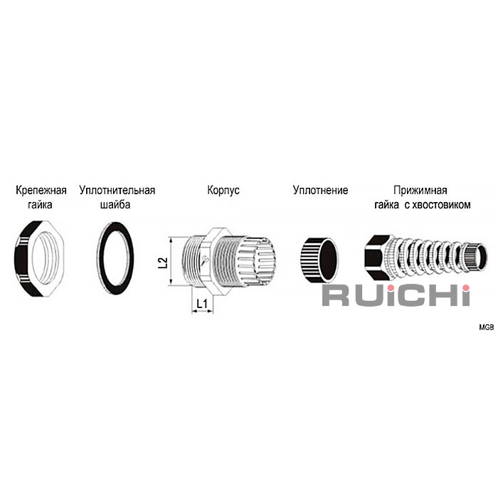 | Тип | Кабельный ввод герметичный пластиковый серии MGB |