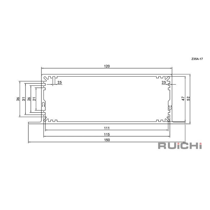 Корпус для РЭА приборный из алюминиевого профиля RUICHI Z35A-17, 100x150x52 мм является оболочкой, служащей для защиты радиоэлектронной аппаратуры (РЭА) от воздействия внешних факторов. Корпуса для РЭА используются в электронике при создании различных приборов. Они могут быть изготовлены в герметичном или негерметичном исполнении.