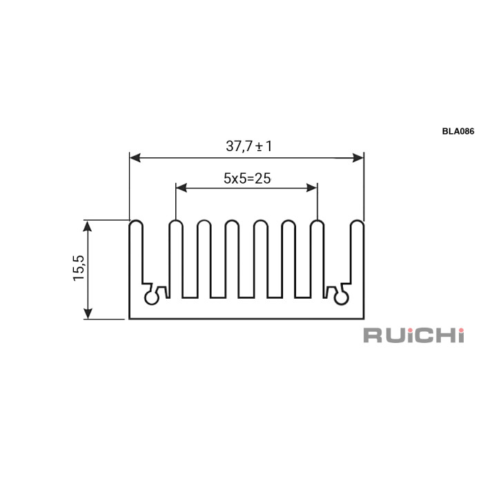 Радиатор охлаждения RUICHI BLA086-25, алюминиевый обеспечивает работу полупроводникового прибора в заданных тепловых режимах. В каждом случае необходим индивидуальный расчет площади радиатора для конкретного прибора.