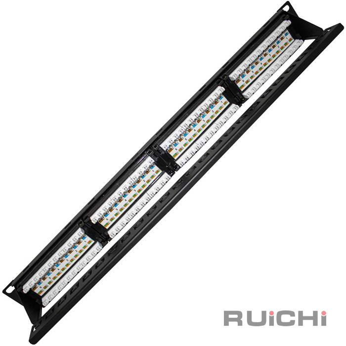 Патч-панель RUICHI RH-PPi1U24U5E предназначена, для коммутации активного сетевого оборудования с портами рабочих компьютеров (или другого оборудования), а также для использования в паре с другой патч-панелью (так называемое двойное представление портов), где первая представляет порты активного сетевого оборудования, а вторая – порты присоединяемых устройств (компьютеров, телефонов, сетевых принтеров и т.п.). Разъемы пронумерованы, имеют площадки для дополнительной маркировки. Контакты, расположенные на обратной стороне также имеют цифровую и цветовую маркировку.