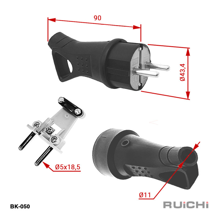 Электрическая разборная штепсельная вилка RUICHI ВК-050 предназначена для присоединения (разъединения) к электрической сети всевозможных электрических приборов, позволяют произвести ремонт электрошнура в случае выхода из строя или повреждения неразборной вилки. С заземлением.
